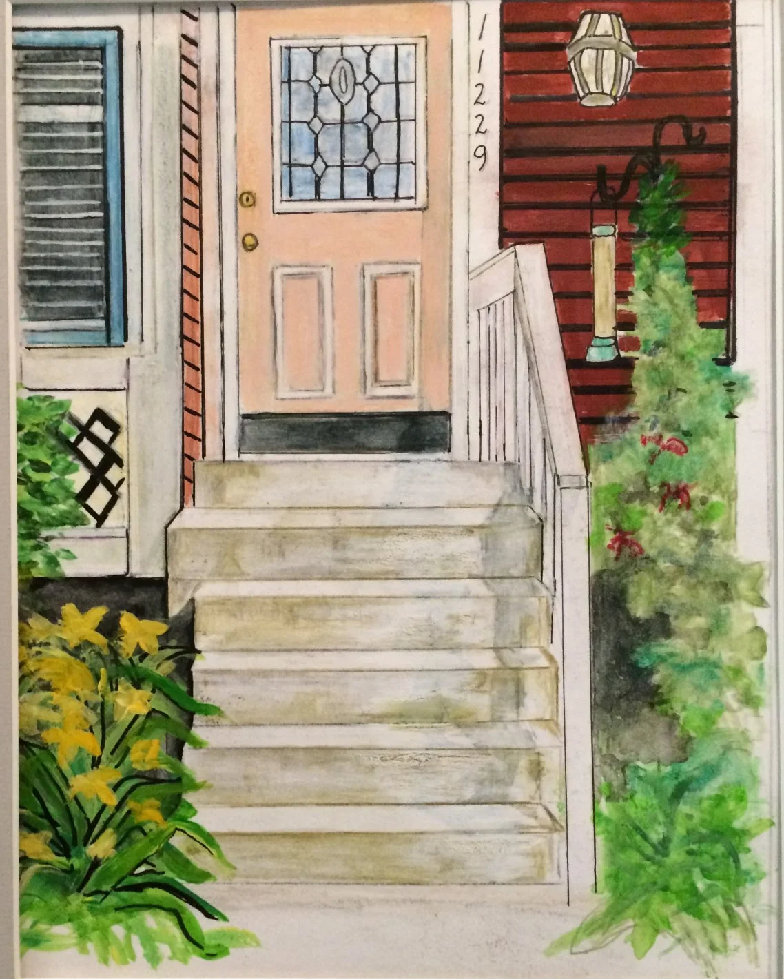 When I call to check in with my parents, my mom loves to tell me that he has been back in his art studio; she shows me any new creations they have hung around the house. I love to see his work on the walls. I recently bought a redrawing of a world map from Ursula K. Le Guin’s Earthsea series. I sent it to my parent’s house for my dad to frame. It brings me peace to hear “he’s down in the studio,” because there where a few years when he was not, that’s when his light dimmed. He did not feel like drawing or creating and so he was not himself; he was not feeling himself and so he did not feel like drawing or creating. My friend was getting married, and I asked him to do a watercolor painting of a picture I had taken at the front entrance of their first apartment together. It took some convincing, but the painting made him come alive again, and he has been back in the studio ever since. That was six years ago now.